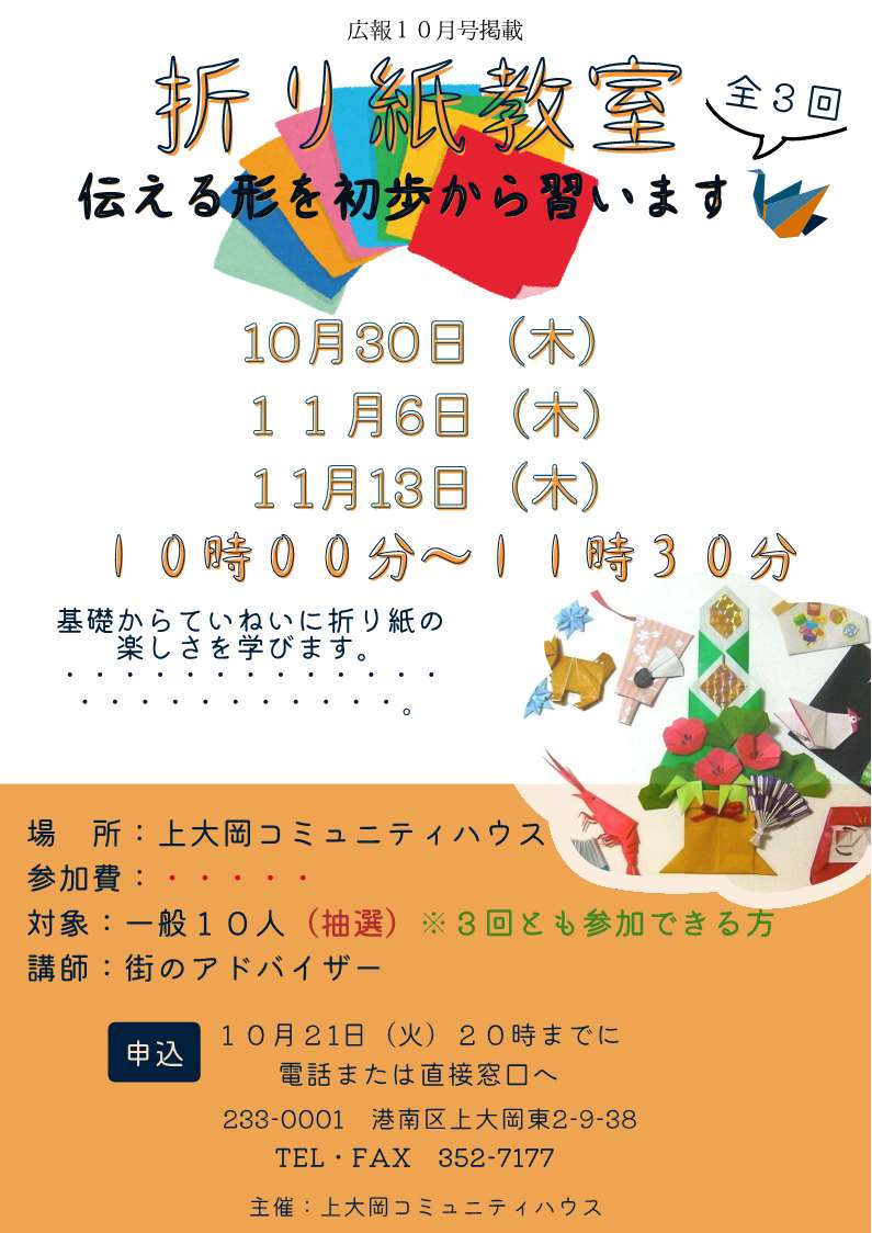折り紙教室(3回) ~伝えるかたちを初歩から習います(全3回)